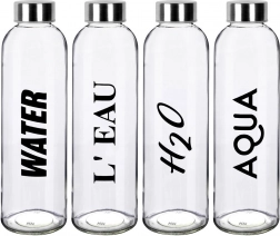 Elegáns, 700 ml űrtartalmú üvegpalack csavaros fém kupakkal és szilikon tömítéssel a tökéletes szivárgásmentességért. Ideális vízhez, limonádéhoz, gyümölcslevekhez vagy smoothie-hoz. Tartós, átlátszó üveg feltűnő fekete felirattal és időtálló dizájnnal a mindennapi hidratáláshoz otthon, a munkahelyen és útközben.