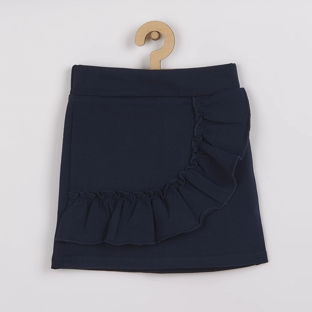 A sötétkék szoknya fodorral igazán csinos darab. A széles, rugalmas derék jól tart, ugyanakkor nem nyomja a pocakot, így egész nap maximális kényelmet biztosít. A pamut és az elasztán kombinációja kellemesen alkalmazkodik a baba mozgásához.