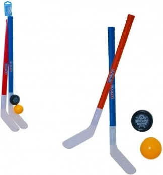 - 2× műanyag hokiütő, 1× floorball labda, 1× műanyag korong