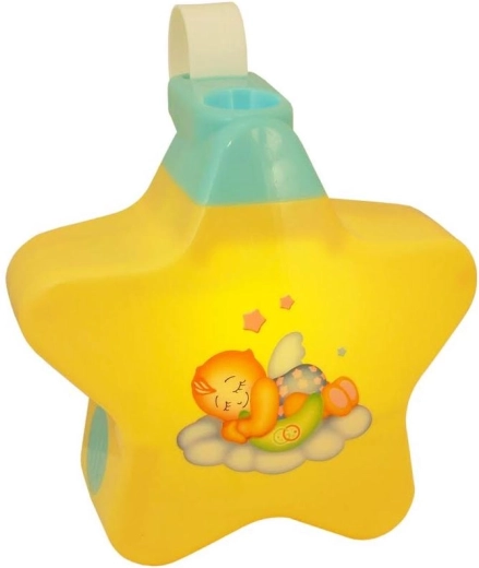 Az irányítás intuitív – a külön gombok lehetővé teszik a zene és a vetítés külön-külön vagy együtt történő indítását, míg a 2 hangerőfokozat a baba igényeihez igazítja a hangot. A praktikus fogantyú és a műanyag rögzítőszalag megkönnyíti a kiságyra vagy bölcsőre való felhelyezést.