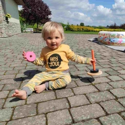 A vállon található patentos zárásnak köszönhetően a póló könnyen fel- és levehető, amit minden szülő értékelni fog. A stílusos mustársárga szín szürke szegélyekkel és „Hey You!” felirattal modern megjelenést ad, amely nagyszerűen kombinálható nadrággal és legginggel.
