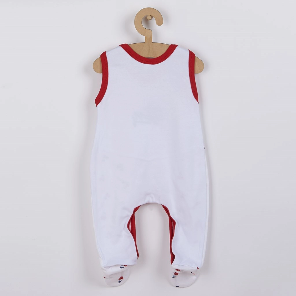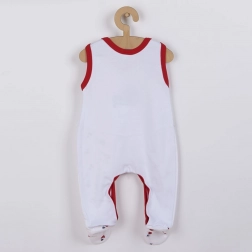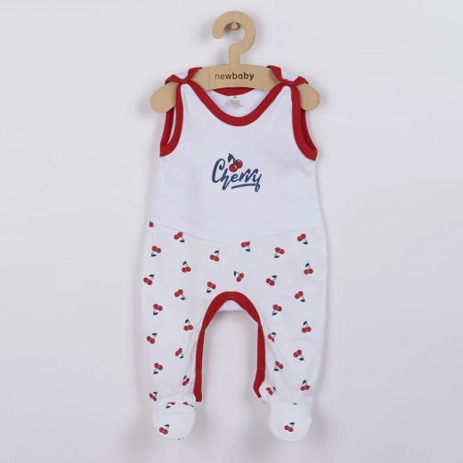 A NEW BABY Cherry rugdalózó puha, légáteresztő és ideális az érzékeny bababőr számára. A 100% pamutnak köszönhetően egész nap és éjszaka kényelmet biztosít a babának. A nyakrész és a vállak színes szegélye stílusos, és gyakori mosás után is tartja a formáját.