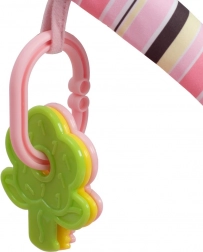 A tükör, a susogó részek, a síp és a csengő támogatják a hallási, vizuális és tapintási ingereket, és fejlesztik a finommotorikát.