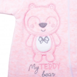 A New Baby márka rózsaszín bársonyos babarugdalózója a gyengédséget, a funkcionalitást és a macis, bájos dizájnt ötvözi. A teljesen bélelt pamutbélés sima és kellemes tapintású, ezért ideális az érzékeny bababőr számára. Otthonra és hűvösebb időben sétákhoz is remek választás.