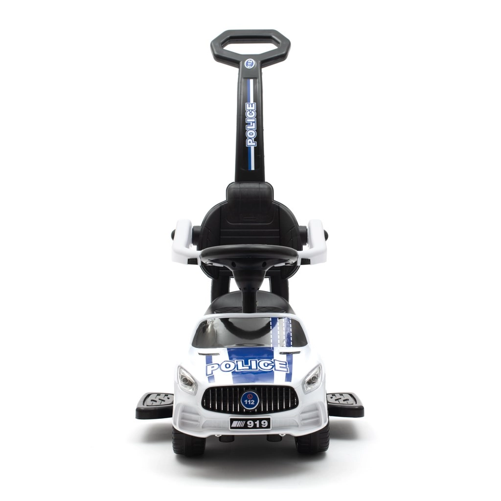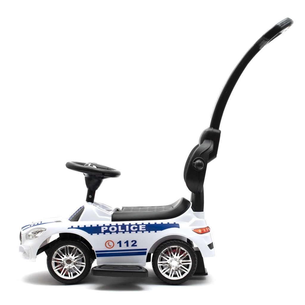 A BABY MIX rendőrségi lábbal hajtós járgány fehér színben remek dizájnt ötvöz a funkcionalitással. A forgó első kerekek biztosítják a sima manőverezést, a formázott ülés és a háttámla kényelmes utazást, a hangpanel pedig élethű élményt ad a játéknak. A magas vezetőrúdnak és az oldalsó kartámaszoknak köszönhetően a szülők kontroll alatt tarthatják a gyermek első útjait.
