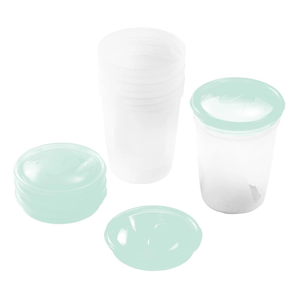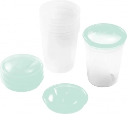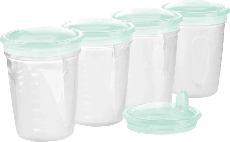 Előny a kiegészítő, ivócsőrös fedél, amely a tárolóedényt ivópohárrá alakítja – ideális az első önálló kortyokhoz. Az élelmiszerrel érintkező anyag tartós, biztonságos és nem tartalmaz biszfenol A-t (BPA free). Az edények többször használhatók és fagyaszthatók, így könnyen készíthet elő tartalékokat későbbre.