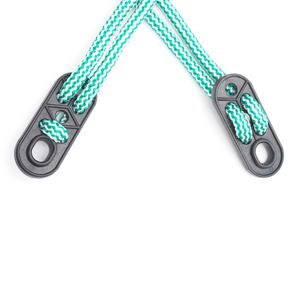 Tanúsított kötelek műanyag állítókkal, melyekkel gyorsan beállítható a hinta ideális magassága a felfüggesztés helyének megfelelően.
