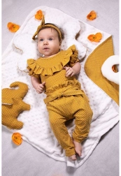 A vállon és a lábak között található patentoknak köszönhetően az átöltöztetés és a pelenkázás egyszerű, felesleges babamozgatás nélkül. A szabás melegen tartja a baba hátát bármilyen mozgás közben, így otthonra és utazáshoz egyaránt remek választás.