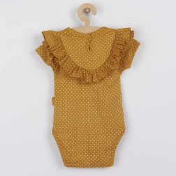 A NICOL Michelle kollekció bababodyja a kényelemre és a babák érzékeny bőrére tekintettel készült. A könnyű pamut kötött anyag puha, légáteresztő és ideális a mindennapi viselethez. A visszafogott fodor és a kedves minta gyengéd megjelenést kölcsönöz a bodynak.