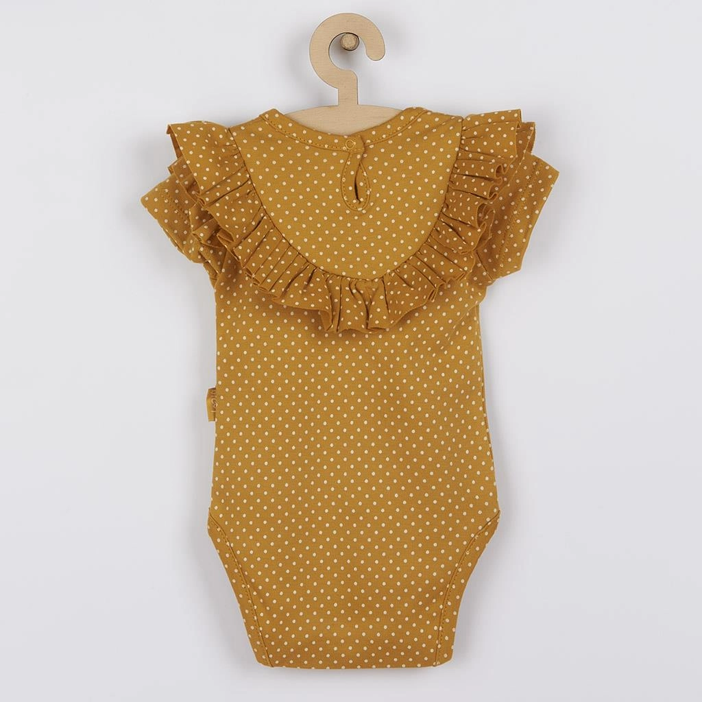 Aranyos és kényelmes, rövid ujjú bababody a NICOL Michelle kollekcióból, finom fodros részlettel és nyomott mintával. A vállon és a lábak között lévő patentos záródás megkönnyíti az öltöztetést és a pelenkacserét. A szabásnak köszönhetően a baba háta mindig fedve marad. 100% pamutból készült a maximális puhaság és szellőzés érdekében.