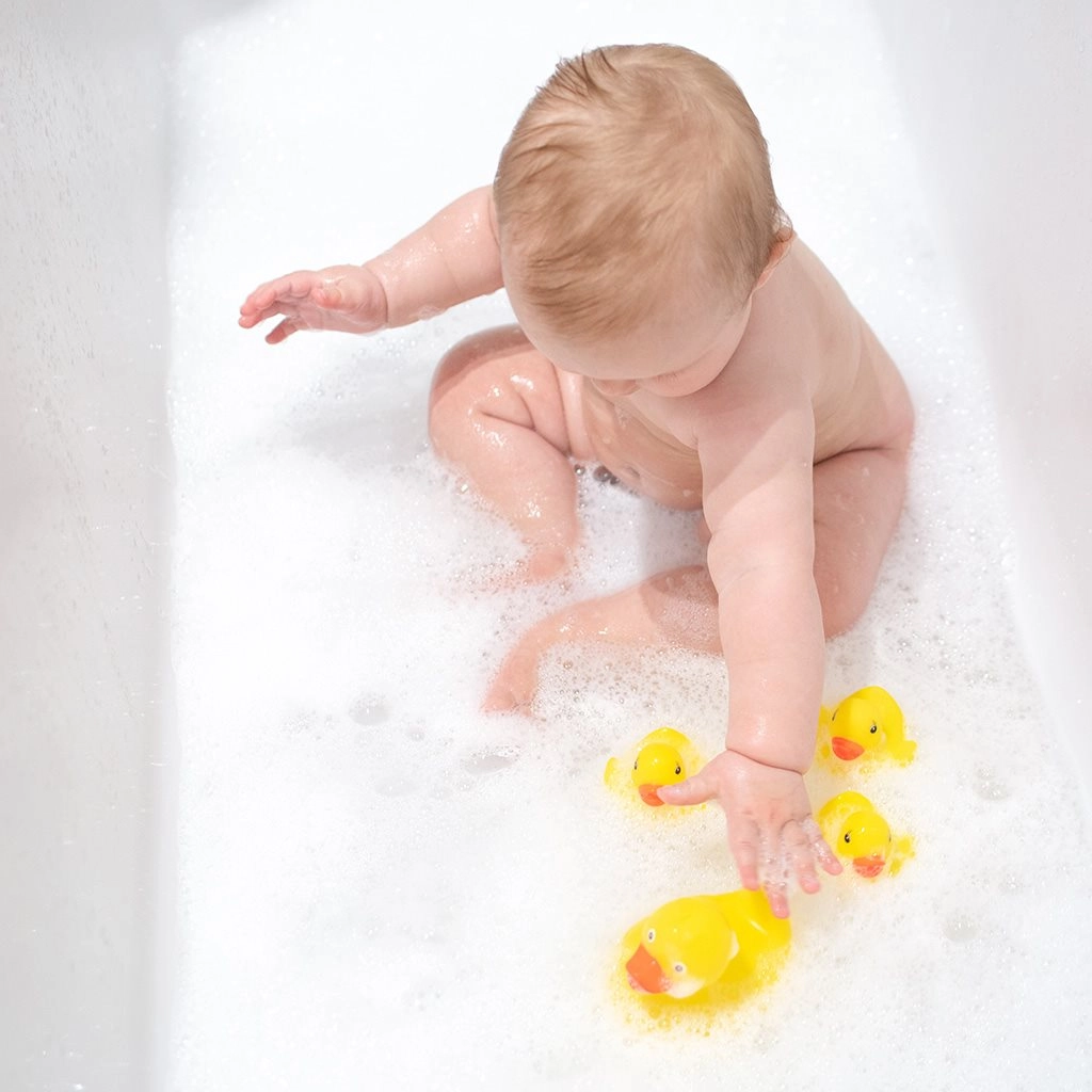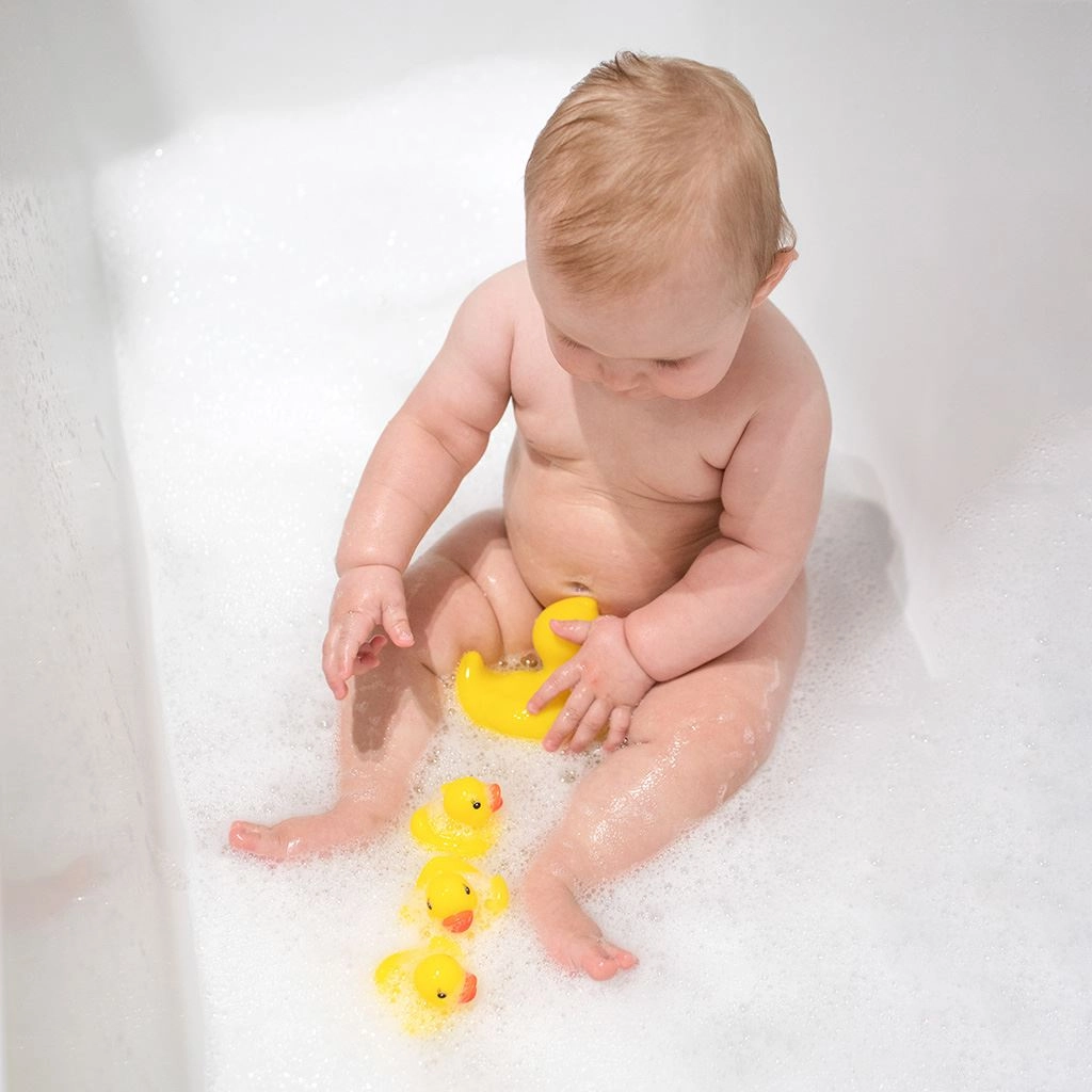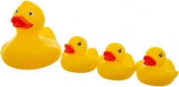Ezzel a bájos kacsacsaláddal minden fürdés vidám élménnyé válik. A szett 1 nagy kacsát és 3 kiskacsát tartalmaz, amelyek úsznak, és a nyílásnak köszönhetően fröcskölni is lehet velük. A ragyogó sárga szín fejleszti a vizuális észlelést, a gyermekkezekhez igazított forma pedig a finommotorikát.