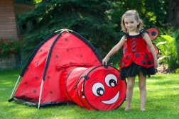 Ez a piros, fekete pöttyös sátor csatlakoztatható alagúttal elbűvöli a kis felfedezőket. Könnyen felállítható és összecsukható, könnyű és hordozható, ezért ideális a gyerekszobába, a teraszra vagy a kertbe. A tartós poliészter hosszú élettartamot és egyszerű karbantartást biztosít.