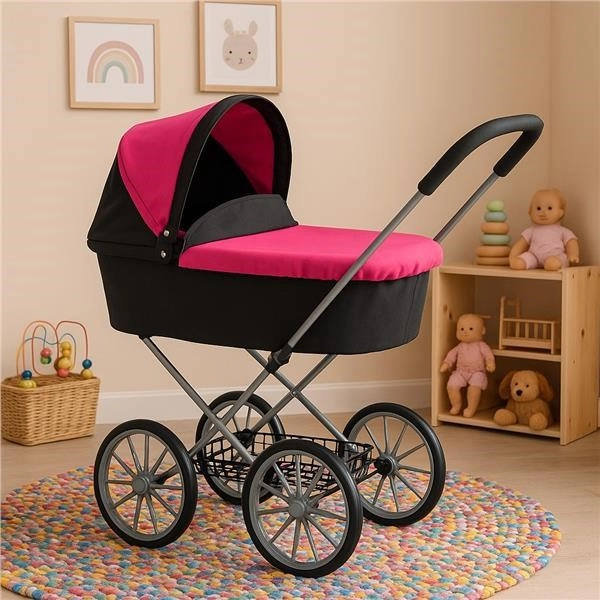 A babakocsi fejleszti a képzeletet és a szociális készségeket – a gyerekek gyakorolják a gondoskodást, empátiát és a koordinációt. A praktikus kosár elnyeli az apróságokat és játékokat, a puha habszivacs fogantyú pedig kényelmes irányítást biztosít a hosszabb séták során is.