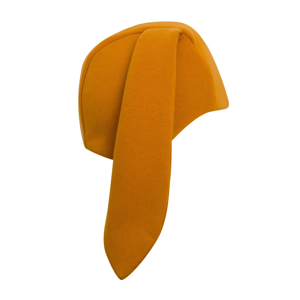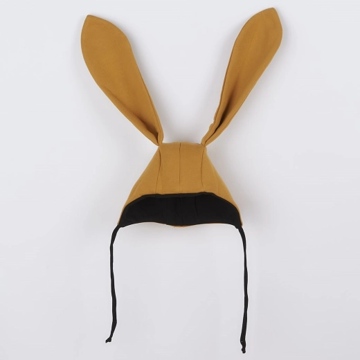 A sapka minőségi pamutból elasztánnal készül, ezért rugalmas, jól tartja a formáját és könnyen feladható. A madzagos megkötés biztonságos, stabil rögzítést ad, nem csúszik le. A semleges barna szín minden öltözékhez illik, a fülecskék pedig bájos megjelenést kölcsönöznek.
