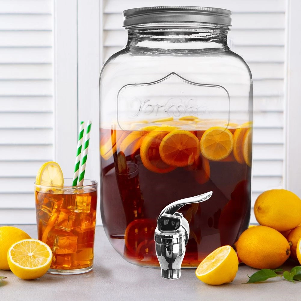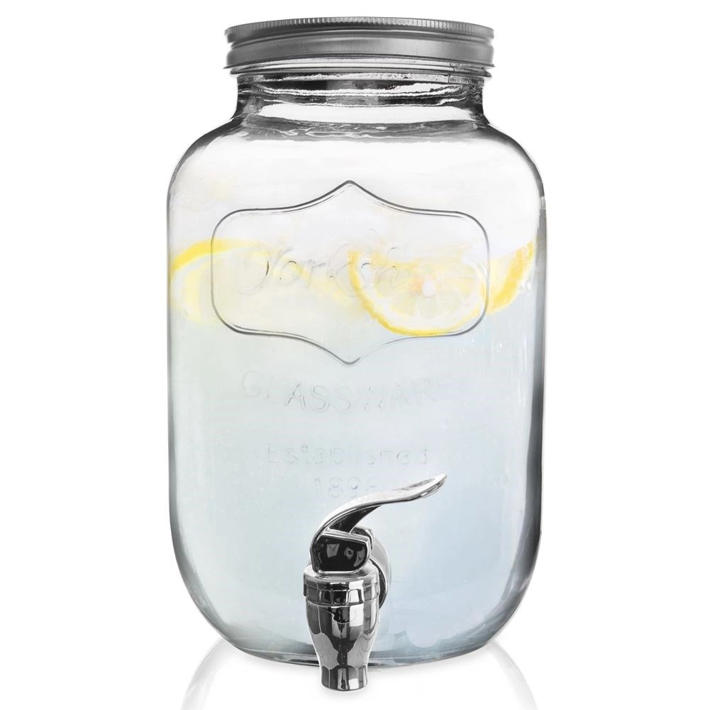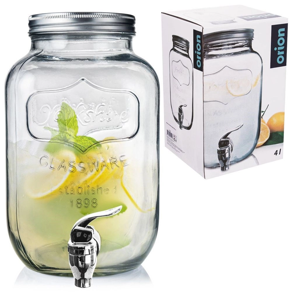 4 literes űrtartalmának köszönhetően könnyedén készíthet nagyobb mennyiségű házi limonádét, gyümölcsös vizet vagy jeges teát. A széles szájnyílás kényelmes töltést és mosást tesz lehetővé, a fém csap pedig egyenletes, tiszta öntést biztosít kilöttyenés nélkül. Az adagoló minőségi, vastag üvegből készült, amely egészségre ártalmatlan és ízsemleges.