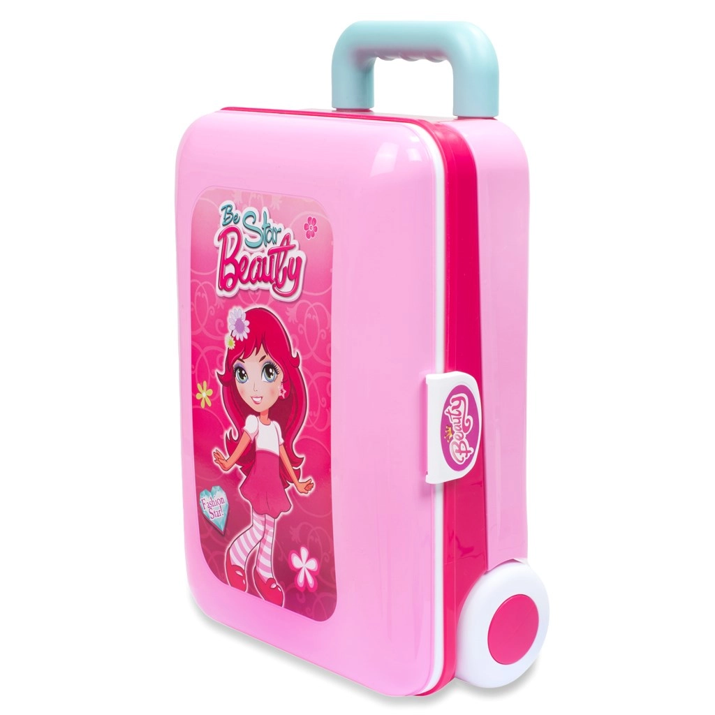 A gazdag kiegészítők között hajszárító, fésű, nyaklánc, karkötők, gyűrűk, „parfüm” és sminkkellékek találhatók – mind egészségre ártalmatlan műanyagból, valódi kozmetikumok nélkül. Az utazást kerekek és teleszkópos fogantyú könnyítik meg, így a kis sminkmester bárhová magával viheti a szalonját.
