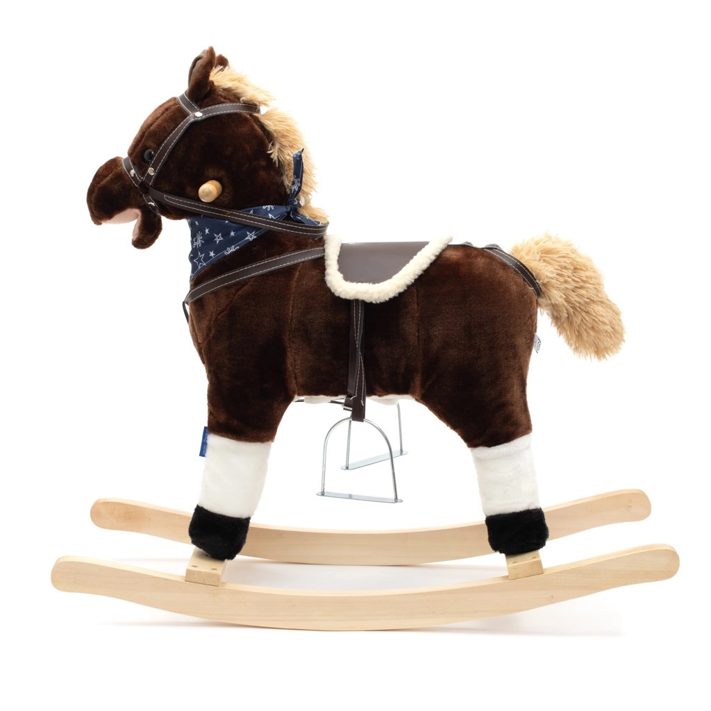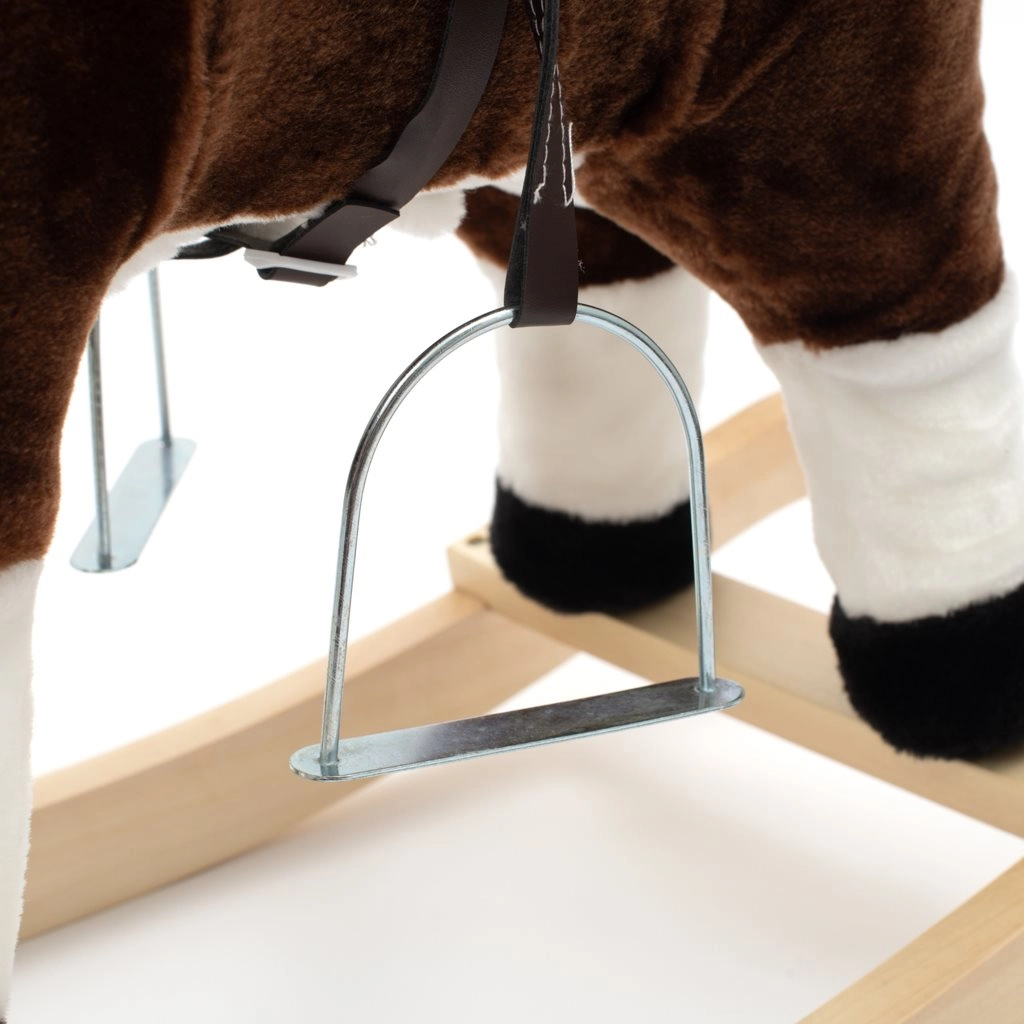 A Baby Mix hintaló valósághű lovaglási élményt nyújt a gyerekeknek. Puha plüssből készült, stílusos kendővel, a fülekben rejtett gombokkal, amelyek vágtahangot, nyerítést, a farok és a száj mozgását, valamint cowboy dalt indítanak. A profilozott fa hintatalpak megakadályozzák a felborulást, míg a fém kengyelek, a fogantyúk és a kényelmes nyereg kényelmet és stabilitást adnak hintázás közben.