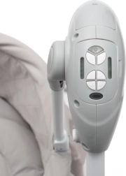 Az integrált panel 12 megnyugtató dallamot és természetes hangokat kínál a baba megnyugtatásához. A praktikus időzítő 15, 30 vagy 60 percre állítható, így a ringatás automatikusan leáll. A levehető kupola finom hálóval véd a rovaroktól és biztosítja a légáramlást, míg a puha párnázás és a biztonságos rögzítés nagyobb kényelmet nyújt.
