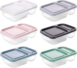 A 750 ml-es, osztott ételtároló doboz remek választás a mindennapi használathoz. Két külön kamrája – egy nagyobb és egy kisebb – külön tartja a szendvicset, gyümölcsöt, zöldséget vagy snackeket, így az ízek és állagok nem keverednek. Az átlátszó falak megkönnyítik a tartalom áttekintését, a színes fedél pedig szorosan rápattan, hogy minden friss maradjon.