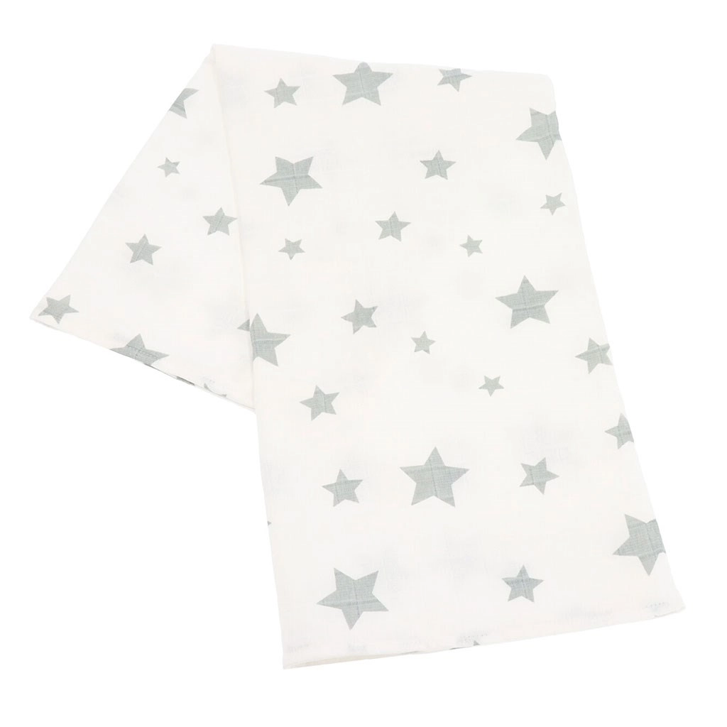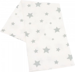 Időtálló minták – szürke pöttyök és szürke csillagok fehér alapon – kislányoknak és kisfiúknak egyaránt illenek. Otthon és útközben is hasznos: fürdés utáni törölközőként, kéztörlőként, előkeként, babakocsi árnyékolóként vagy bukás elleni alátétként.