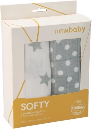 A NEW BABY Softy puha, kétrétegű tetra törölköző 90 × 110 cm méretben, 100% pamutból, 200 g/m² grammsúllyal. Erős, selymes tapintású, és a beszegett széleknek köszönhetően jobban tartja a formáját. Sokoldalúan használható – fürdőlepedőként, kéztörlőként, előkeként, babakocsi árnyékolóként vagy bukás elleni alátétként. Csehországban tesztelve, megfelel a 3 év alatti gyermekekre vonatkozó higiéniai követelményeknek.