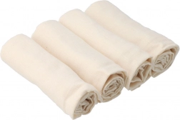 A 150 g/m2 grammsúlyú, erős, két rétegű szövet és a négy beszegett szél nagyobb ellenállóságot és hosszú élettartamot garantál. A pelenkák sokoldalúan használhatók: törölközőként, előkeként, büfiztető alátétként, babakocsiban árnyékolóként vagy ölelgetéshez. A természetes, fehérítetlen BIO pamut apró sötétebb részecskéket tartalmazhat, amelyek az anyag természetes sajátosságai, és nem jelentenek hibát.