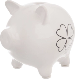 Stílusos, fehér kerámia malacpersely lóherelevél-motívummal, amely megtanít spórolni, és közben díszíti az otthont. Minőségi kerámiából, fényes mázzal készül. Nincs rajta nyílás az érmék kivételéhez – a pénz csak széttöréssel vehető ki, ami támogatja a fegyelmezett megtakarítást. Remek ajándékötlet gyerekeknek és felnőtteknek egyaránt.