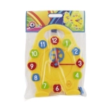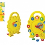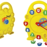 Minden gyerek szeret tanulni, csak ne legyen unalmas. Ezzel a betétes kirakóval a gyerekek gyakorolják a finommotorikát a számokat ábrázoló formák behelyezésével. Játékos módon ismerkednek az óraolvasással: a nagy mutató mechanikus forgatásával, amely egy fogaskerék segítségével a kis mutatót is mozgatja.