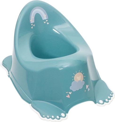 A Meteo zenélő gyerek bili türkiz színben kiváló segítség a higiéniai szokások gyakorlásához. A magas háttámla és a széles ülőrész kényelmes, stabil ülést biztosít a gyermekeknek. Az alsó rész csúszásgátló kialakítása segít megakadályozni az elcsúszást, növelve a használat biztonságát.