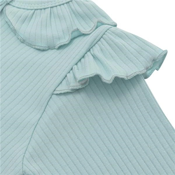 A jól átgondolt pattentos záródás a vállon és a lábak között megkönnyíti az öltöztetést és a pelenkacserét fölösleges forgatás nélkül. A hosszú ujj és a jól illeszkedő szabás gondoskodik róla, hogy a baba háta mindig fedve maradjon, így alvás és játék közben is biztosítja a hőkényelmet.
