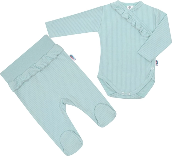 Aranyos, 2 részes, pamutból készült NEW BABY Stripes szett jégkék színben, bodyval és félkezes rugdalózóval. Puha, 100% pamutból készült, amely kíméletes és gyengéd az érzékeny bőrhöz. A praktikus patentos záródás megkönnyíti az öltöztetést és a pelenkacserét, a félkezes rugdalózó rugalmas dereka pedig nem nyomja a pocakot. A modern, csíkos minta mindennapi stílust kölcsönöz a szettnek.