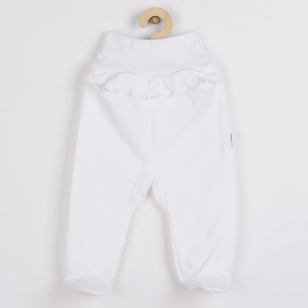 A bájos, kétrészes NEW BABY Stripes szett fehér színben ideális választás az érzékeny bababőr számára. A minőségi pamutnak és a puha bordás kötésnek köszönhetően a ruházat légáteresztő, kellemes tapintású és alkalmas a mindennapi viselésre. A hosszú ujjú body oldalsó záródással és a lábak között patentokkal gyors pelenkázást tesz lehetővé, míg a lábfejes nadrág rugalmas derékkal gyengéden öleli körbe a pocakot kellemetlen nyomás nélkül.