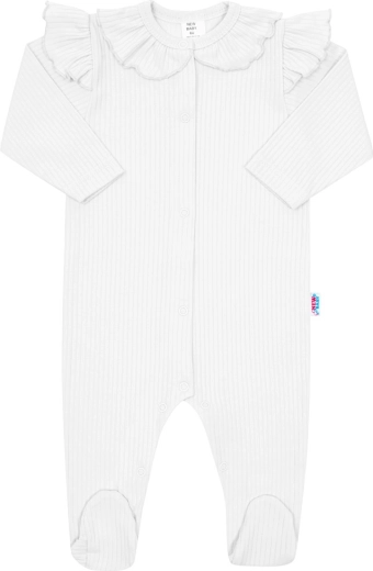 Kényelmes és praktikus újszülött overál 100% pamutból, NEW BABY Stripes, fehér színben, modern csíkos mintával. A teljes hosszában és a lábak között pattentokkal ellátott záródás megkönnyíti a pelenkázást és az öltöztetést. A puha és finom anyag nem irritálja a baba érzékeny bőrét, és megbízhatóan védi a hátat bármilyen mozgás közben.
