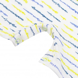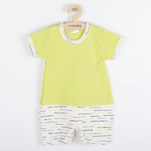 Könnyű és kényelmes baba fiú overál a New Baby Summertime márkától, 100% pamutból. Rövid ujjú, praktikus patentos záródással a vállon és a lábak között az egyszerű öltöztetéshez és pelenkázáshoz. A puha és légáteresztő anyag egész napos kényelmet biztosít a babának a meleg napokon.