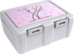 A doboz élelmiszerbiztonságos, minőségi műanyagból készült, elegáns szürke színben, dekoratív rózsaszín, szívecskés panellel. Ideális gyerekeknek iskolába és felnőtteknek munkába, kirándulásra vagy utazáshoz. A megjelenés megőrzése érdekében nem ajánlott mosogatógépben mosni és mikrohullámú sütőben melegíteni.