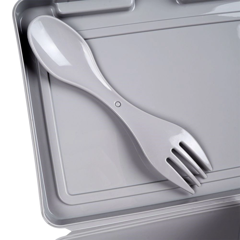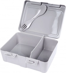 A kétrekeszes uzsonnás doboz rendezetten elkülönítve és frissen tartja ételeit. Tartozéka az okos 2 az 1-ben evőeszköz (kanál/villa), 14,5 cm hosszban, saját helyével a fedél alatt, így mindig kéznél lesz. A strapabíró kivitel, a kompakt méretek és a erős klipszek megbízható záródást biztosítanak szállítás közben.