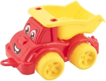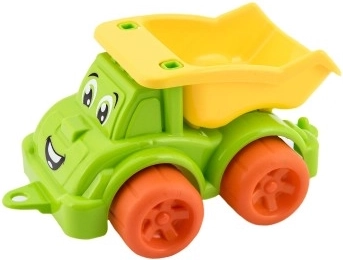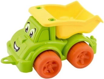 Aranyos, 22 cm hosszú műanyag billenős teherautó funkcionális platóval, amely remek játék otthonra és a szabadba is. Strapabíró kivitelének és lekerekített formáinak köszönhetően biztonságos 12 hónapos kortól. Ideális játék a homokozóba és a gyermeki fantázia fejlesztéséhez. A csomag 1 darabot tartalmaz véletlenszerű színösszeállításban.
