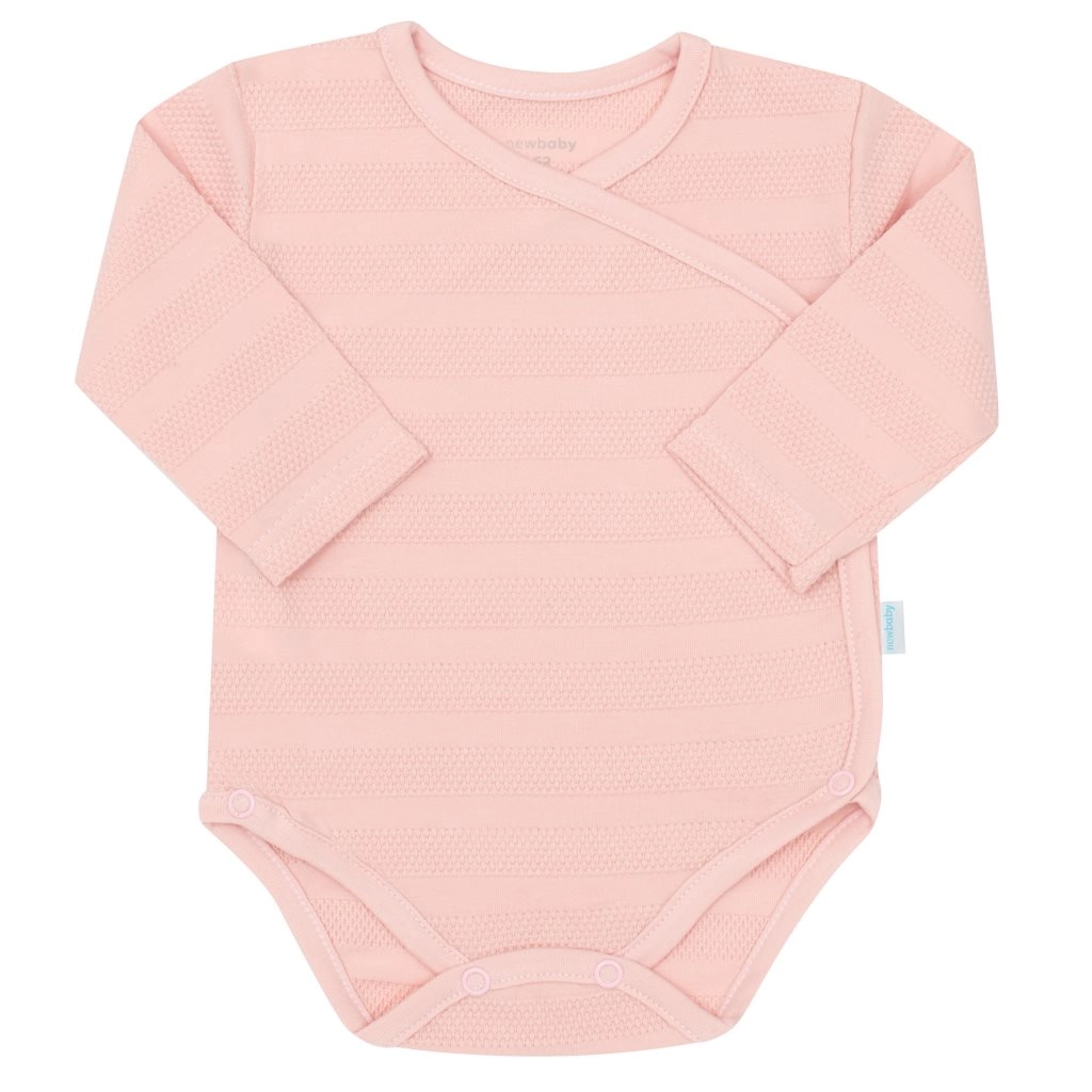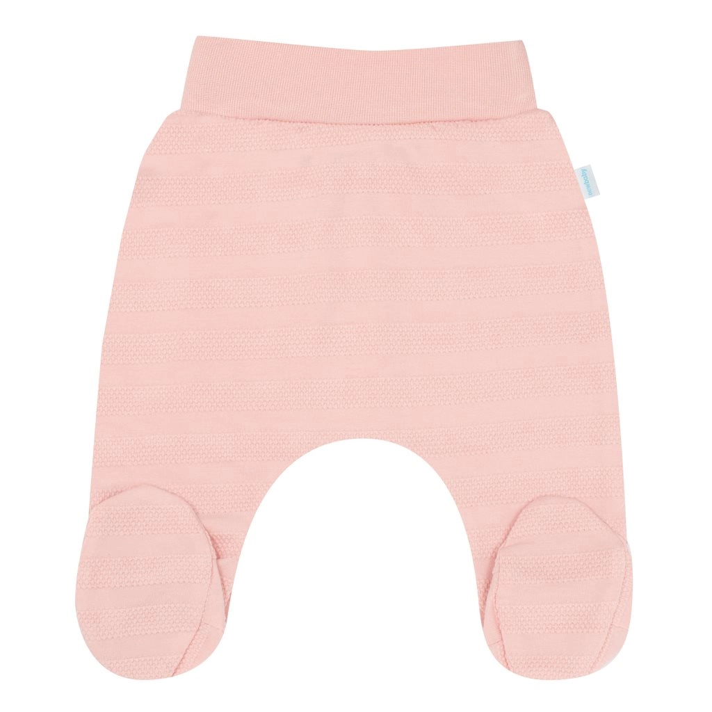 A szett 100% pamutból készül, amely puha, légáteresztő és kíméletes az érzékeny bababőrhöz. A finom, strukturált minta és az összehangolt rózsaszín árnyalat elegáns, időtálló megjelenést ad a szettnek. Ideális a kórházba, mindennapi viselésre és stílusos ajándéknak is.