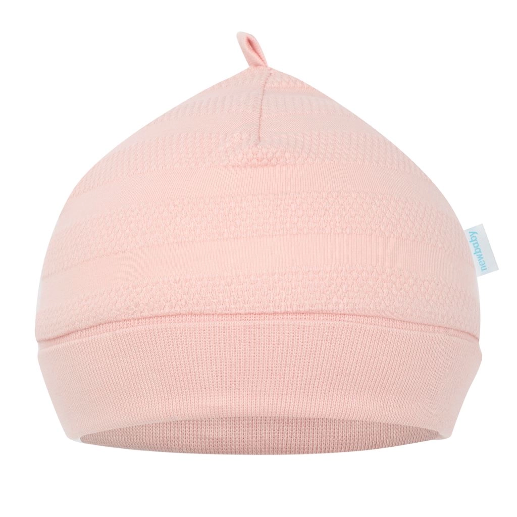 A puha pamut sapka széles passzéval gyengéden körbeöleli a fejecskét, nem csúszik le. Ideális védelem a hideg ellen.