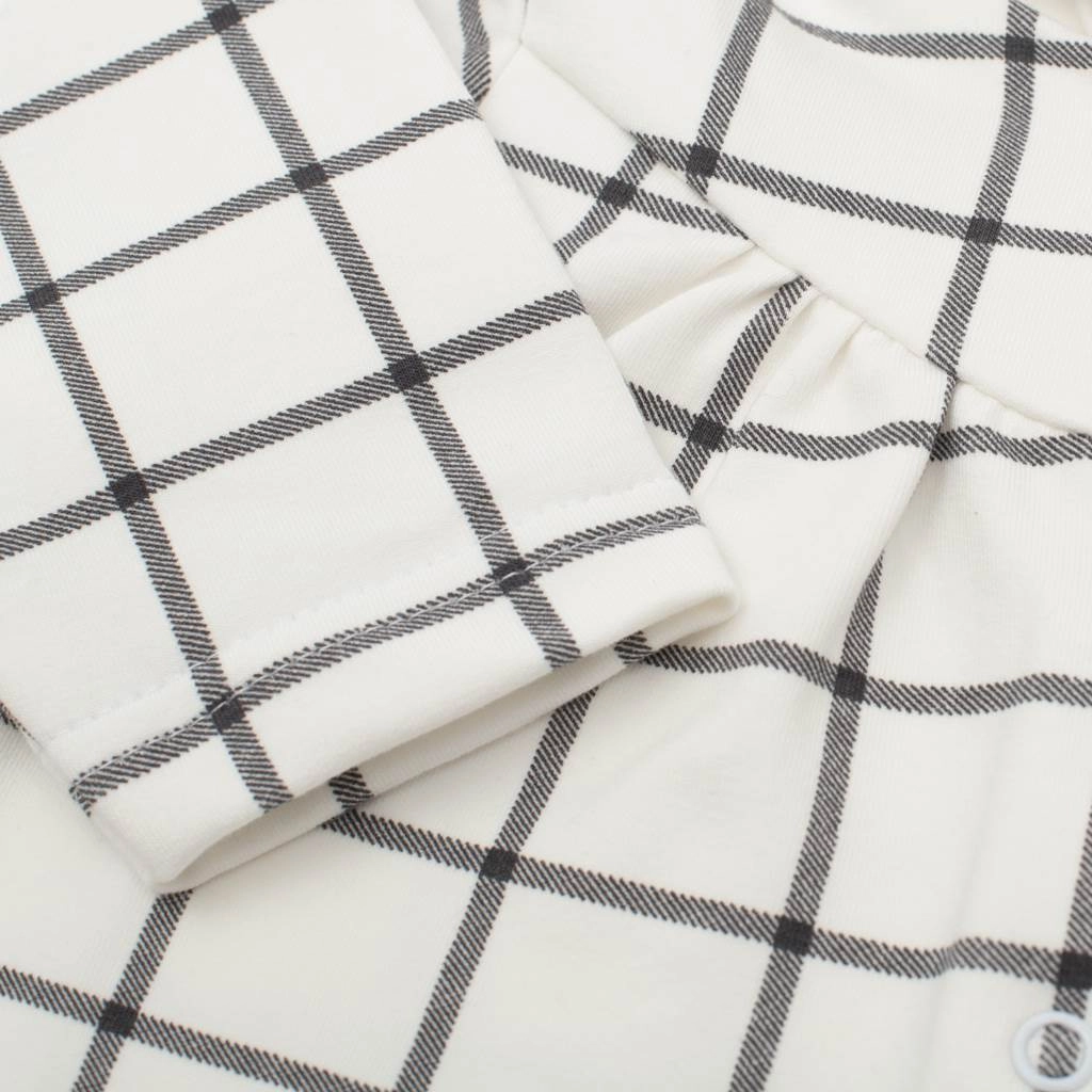 A fehér-szürke kockás nyomat modern megjelenést ad a szettnek, és könnyen kombinálható más ruhadarabokkal a gardróbban.