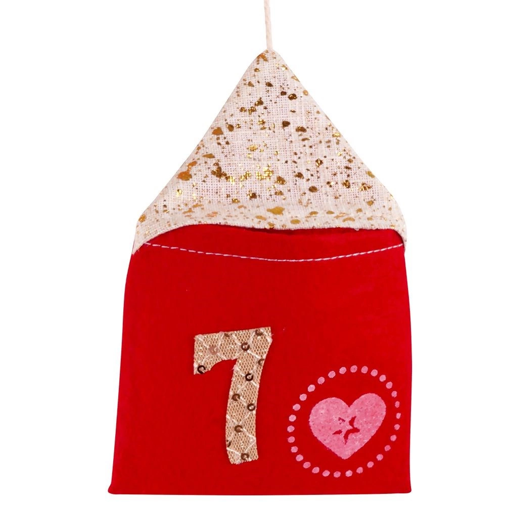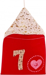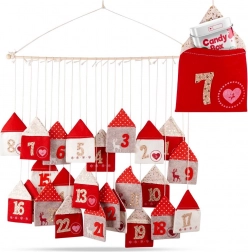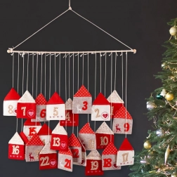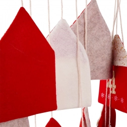 A naptár 24 textil zsebecskét tartalmaz házikó formában (kb. 10 × 15,5 cm), amelyekbe könnyedén elrejthet mini ajándékokat, feladatokat, üzeneteket vagy édességeket. A masszív filc tartja a formát, kellemes tapintású, így a naptár évről évre újra használható.