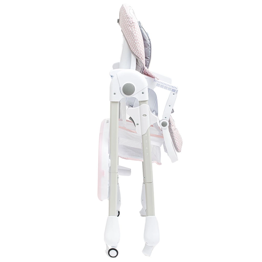A BABY MIX Infant rózsaszín etetőszék egyesíti a kényelmet, a biztonságot és a könnyű karbantartást. A 7 fokozatú magasságállításnak köszönhetően egyszerűen a gyermek növekedéséhez és az asztal magasságához igazítható. A háromállású háttámla és a kétpozíciós lábtartó megfelelő ergonómiát biztosít etetéskor és pihenéskor is. A praktikus dupla, levehető tálca helyet ad étkezéshez és játékhoz, míg az alsó kosár mindent kéznél tart.