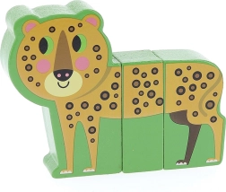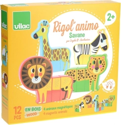 A Vidám szafari fa kirakó a 2 éves kortól ajánlott gyerekeknek nyújt különleges élményt: minden állat masszív elemekből áll, rejtett mágnesekkel, amelyek finoman kapcsolódnak egymáshoz. Az elemek az állatok között cserélhetők, így mókás „hibridek” hozhatók létre, amelyek serkentik a fantáziát és a kíváncsiságot.