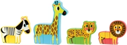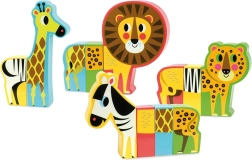 Négy szafariállat mágneses elemei szabadon kombinálhatók egymással – tökéletes a kreativitás és a képzelet fejlesztéséhez.