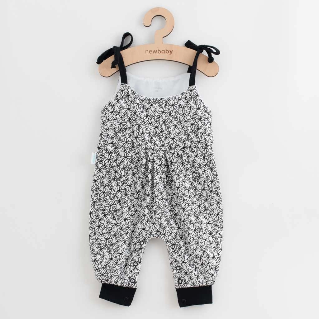 A könnyű kertésznadrág teljes felületén virágmintás, vállpántjai megkötősek az egyszerű hosszállításért, az alsó szárakon szélesebb, rugalmas passzé gondoskodik a maximális kényelemről. A teljes szett minőségre törekvő varrással készült, hogy a baba egész nap kellemesen érezze magát.