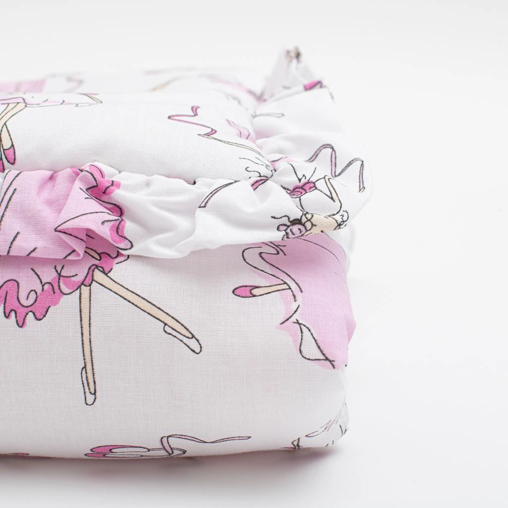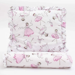 A mesebeli balerinás minta és a dekoratív fodor finom, elegáns karaktert ad a szettnek. Az anyagok nem tartalmaznak formaldehideket vagy más káros anyagokat, ellenállnak a kifakulásnak és nem fogják meg a többi textíliát.