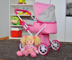 A MILLY MALLY Alice Prestige Pink mély babakocsi nagyszerű választás a kis gondoskodóknak. A kivehető mózeskosár praktikus hordozóként is szolgál kb. 40 cm hosszú babák számára. A könnyű szerkezetnek és a habkerekeknek köszönhetően otthon és kint is könnyen irányítható.