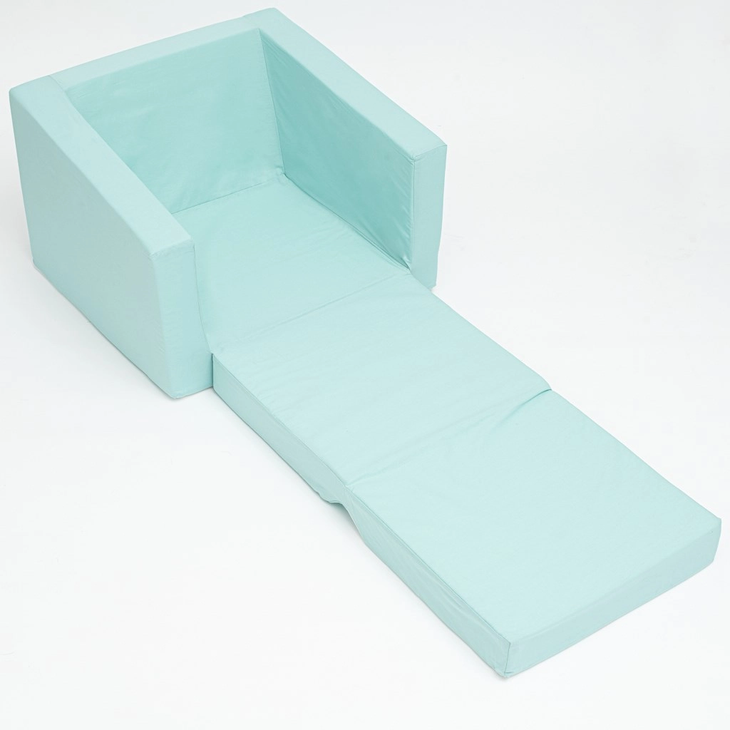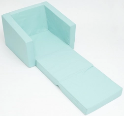 Kényelmes és könnyű, menta színű New Baby Elephant gyerek kihúzható fotel, amely ideális minden gyerekszobába. Puha poliuretán habból készül, levehető, cipzáras pamut huzattal rendelkezik, és az egyszerű kihúzhatónak köszönhetően sokoldalúan használható játékhoz, pihenéshez és mesenézéshez. Az anyagok megfelelnek az OEKO-TEX STANDARD 100 követelményeknek.