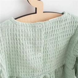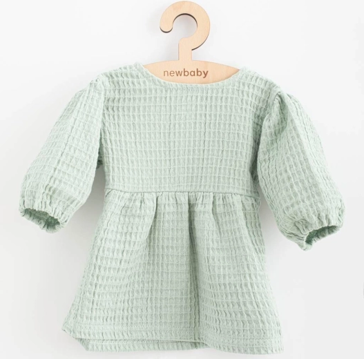 Stílusos, vastagabb muszlinból készült baba ruha a cseh NEW BABY márkától, ideális tavaszra, őszre és hűvösebb napokra. Oversize A-vonalú szabással, kényelmes 3/4-es ujjakkal és praktikus hátsó patentos zárással. A kellemes, lélegző és tartós, 100% pamut muszlin kényelmet nyújt a mindennapi viseléshez és az ünnepi alkalmakhoz is.