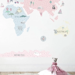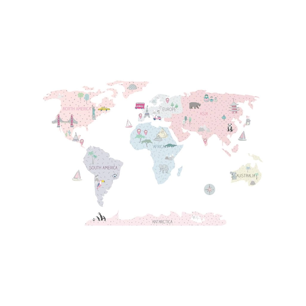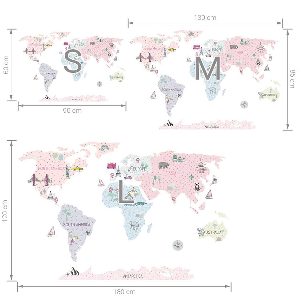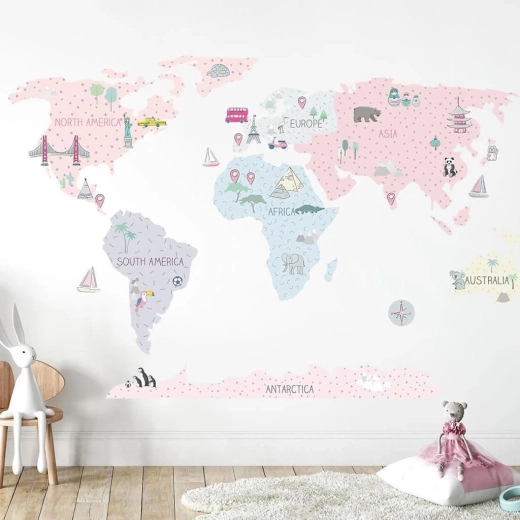 A rózsaszín világtérkép L méretben elegáns és egyben praktikus fali dekoráció a gyerekszobába. A tompa pasztell színek remekül illenek a modern enteriőrökhöz, és kellemes hangulatot teremtenek a játékhoz és a tanuláshoz. A gyerekek természetes módon ismerkednek meg a kontinensekkel, óceánokkal, égtájakkal és ismert nevezetességekkel.